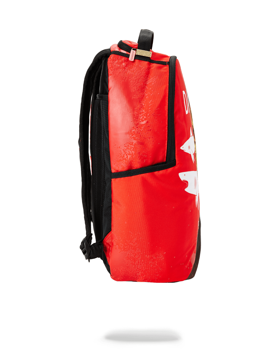 ExteriorDimensions: 18' x 6' x 11.5' ∙ Front zipper pocket ∙ Side pockets ∙ Zippered Stash pocket ∙ Ergonomic mesh back padding ∙ Adjustable Straps for custom sizing ∙ Nylon Zippers with Metal Hardware ∙ Metal 'Sprayground Authentic' badge ∙ Slide through back sleeve connects to Carry on luggage to free your hands