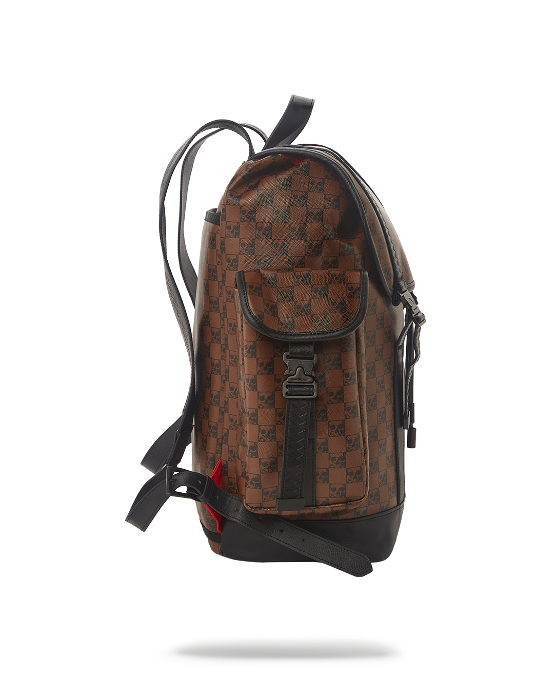 ExteriorDimensions: 18' x 6' x 11.5' • Top Flap opening w/ adjustable metal enamel buckles and drawstring closure • Two side cargo pockets with metal enamel buckles and drawstring closures • Zippered Stash pocket • Ergonomic mesh back padding • Adjustable Straps for custom sizing • Embossed logo on back strap