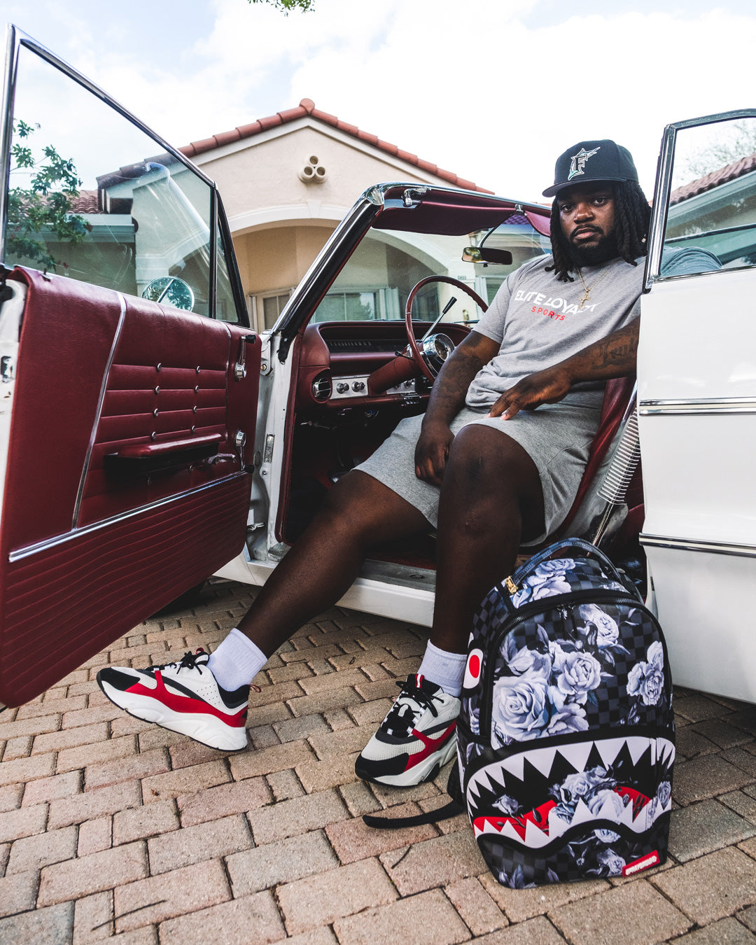 ExteriorDimensions: 18' x 6' x 11.5' ∙ Front zipper pocket ∙ Side pockets ∙ Zippered Stash pocket ∙ Ergonomic mesh back padding ∙ Adjustable Straps for custom sizing ∙ Nylon Zippers with Metal Hardware ∙ Metal 'Sprayground Authentic' badge ∙ Slide through back sleeve connects to Carry on luggage to free your hands