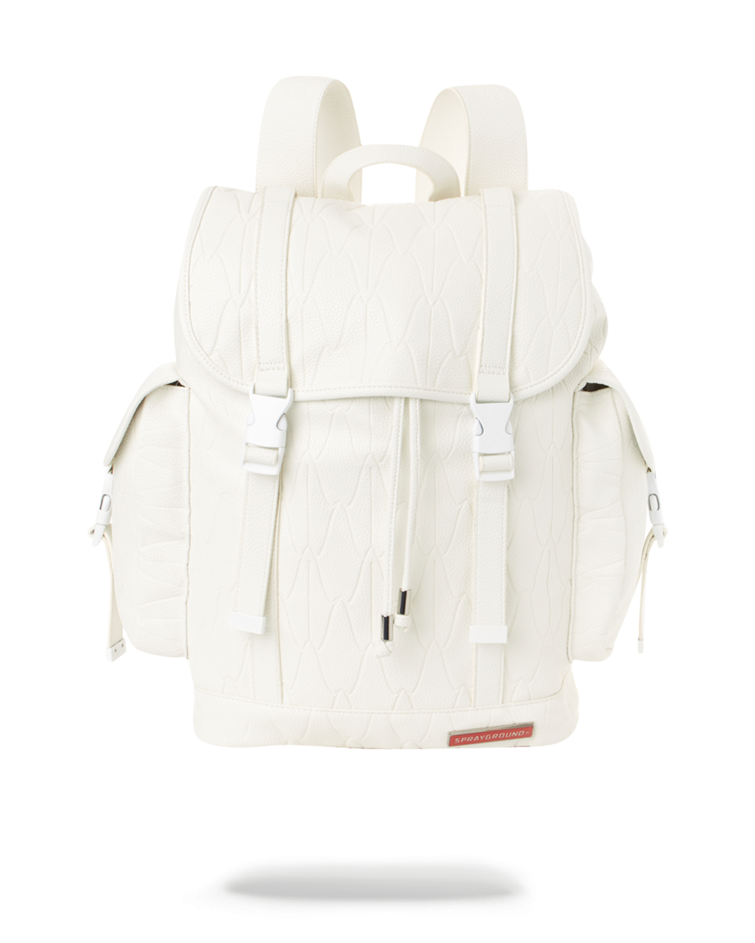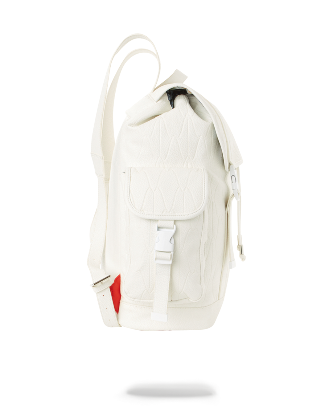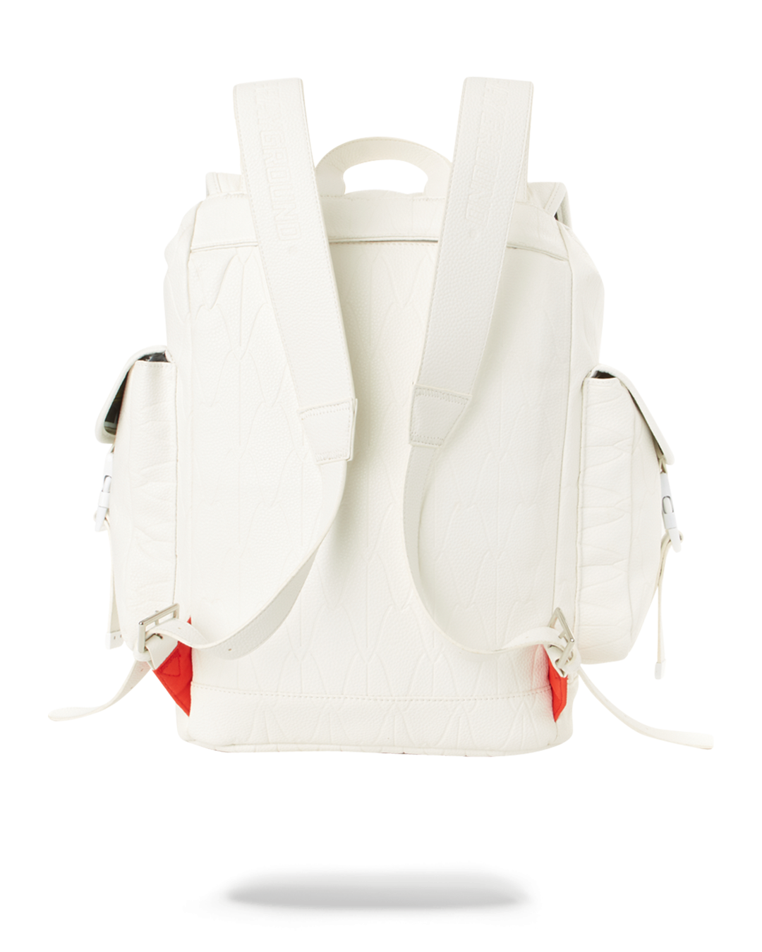 ExteriorDimensions: 18' x 6' x 11.5' • Top Flap opening w/ adjustable metal enamel buckles and drawstring closure • Two side cargo pockets with metal enamel buckles and drawstring closures • Zippered Stash pocket • Ergonomic mesh back padding • Adjustable Straps for custom sizing • Embossed logo on back strap