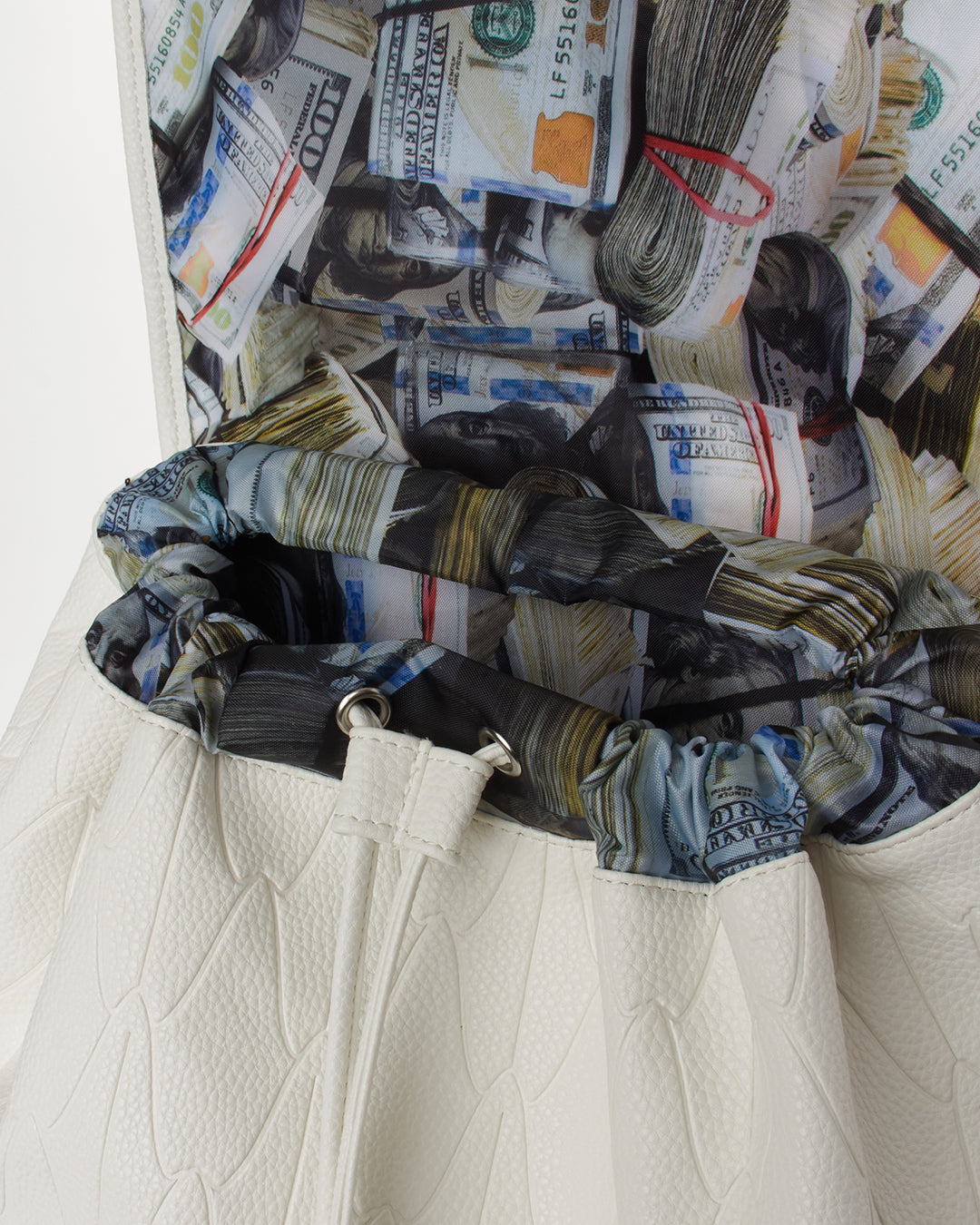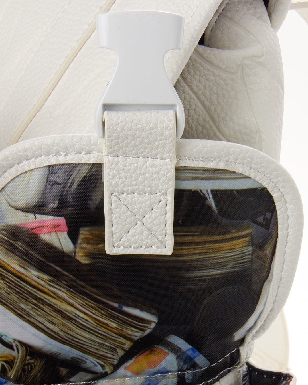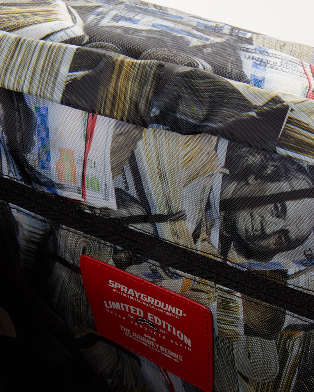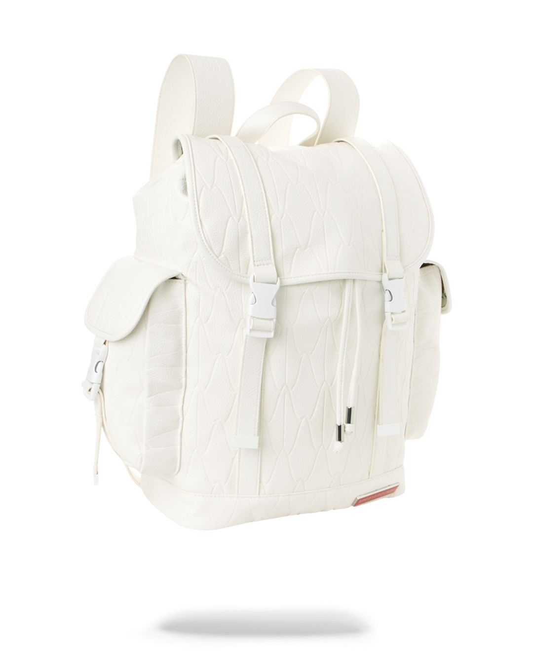 ExteriorDimensions: 18' x 6' x 11.5' • Top Flap opening w/ adjustable metal enamel buckles and drawstring closure • Two side cargo pockets with metal enamel buckles and drawstring closures • Zippered Stash pocket • Ergonomic mesh back padding • Adjustable Straps for custom sizing • Embossed logo on back strap
