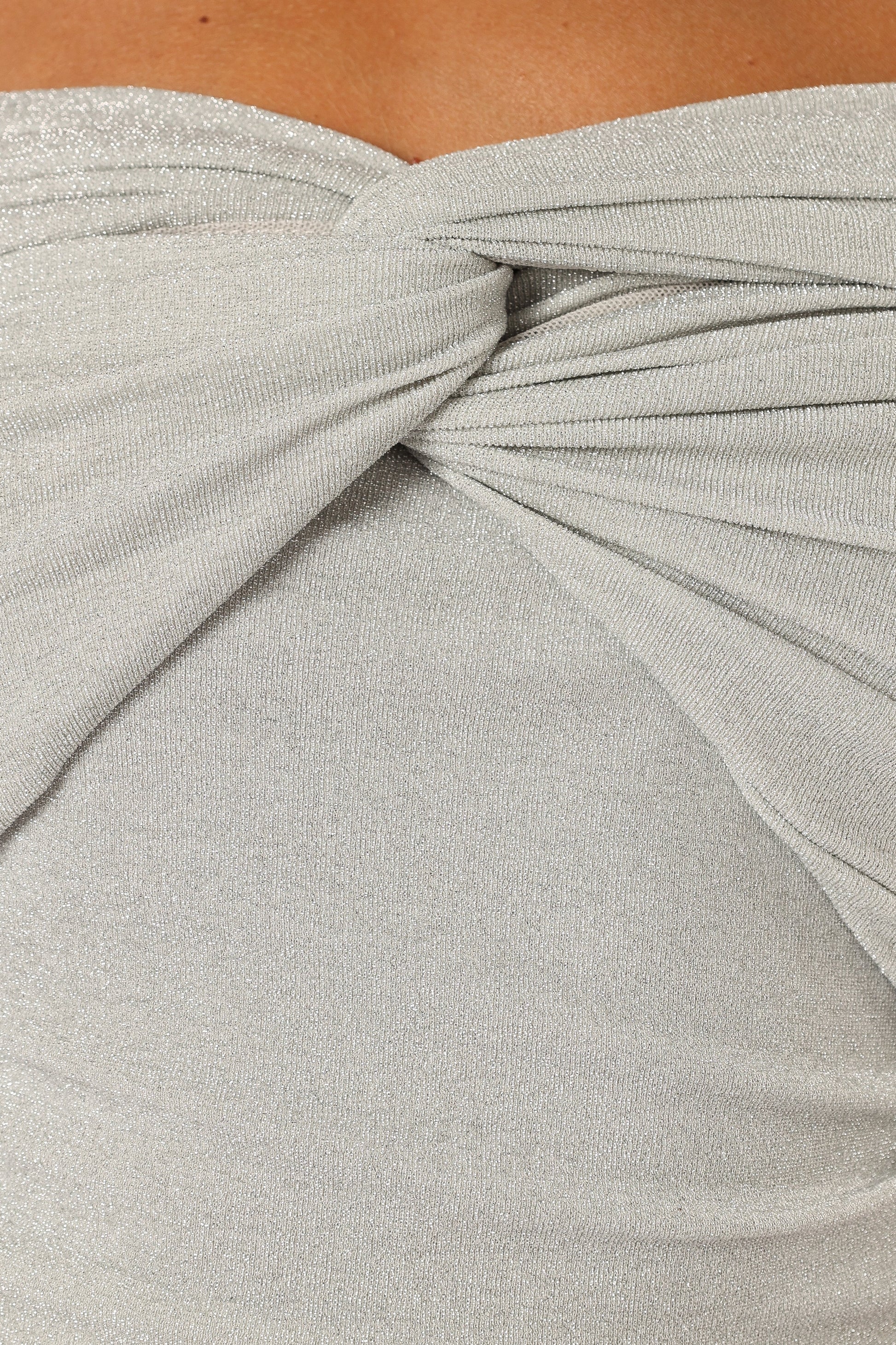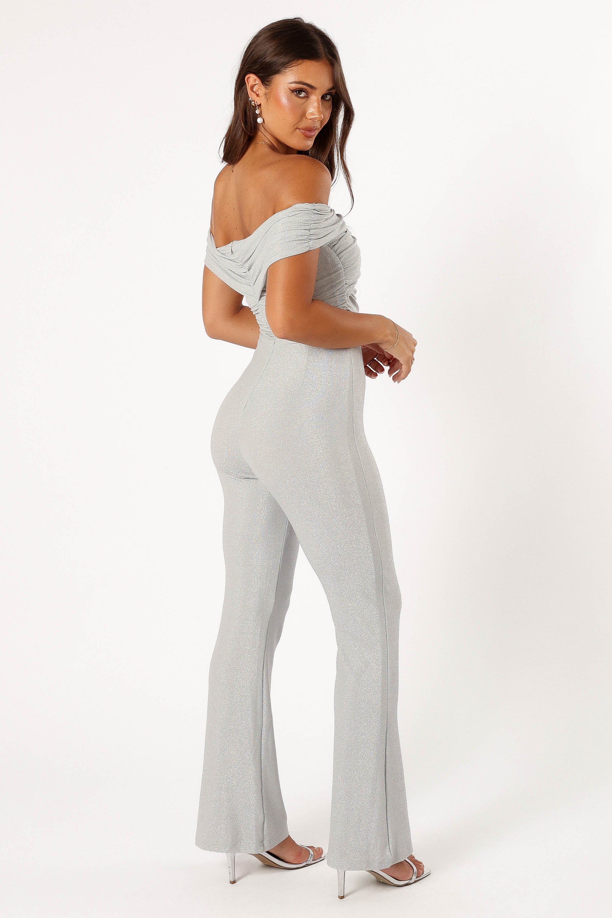 DETAILS Get ready to turn heads in our fun off-shoulder jumpsuit. The alluring sweetheart neckline highlights your décolletage, while the twist knot detail on the bust adds a playful touch. The invisible back zip ensures comfort and ease of wear.