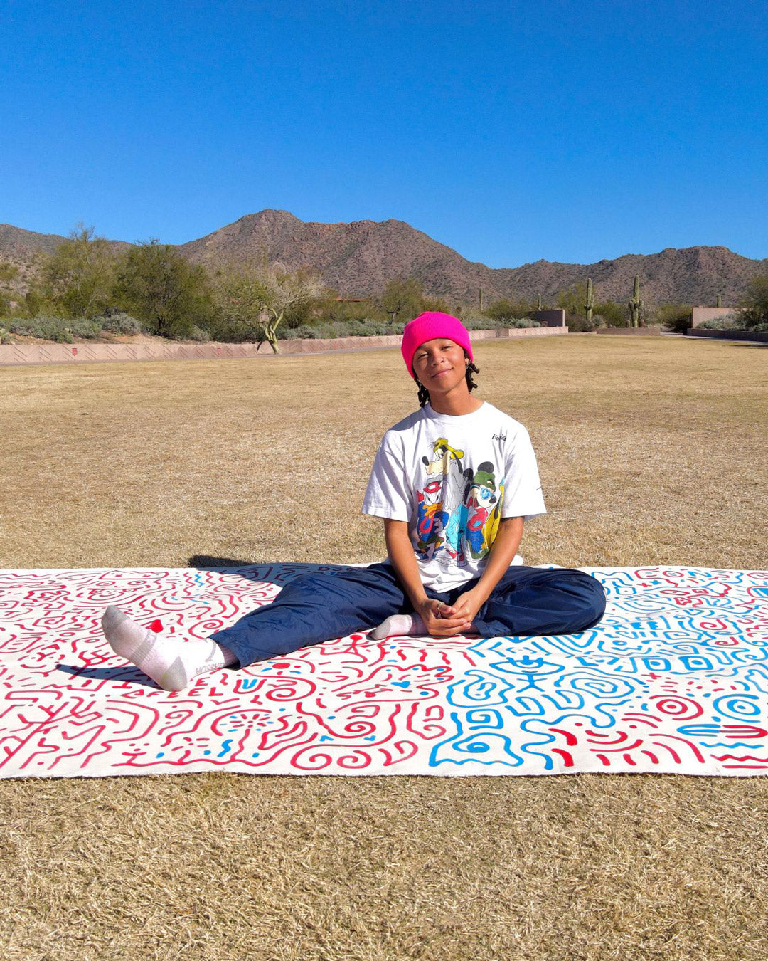 Sprayground teamed up with artist Shereen Jenkins to create one of one limited edition backpacks, pushing the boundaries of traditional bags. While many designer items are designed by the artist few are actually imprinted with the DNA. What was once a 60ft long canvas has been divided into 32 bags with no one bag alike.