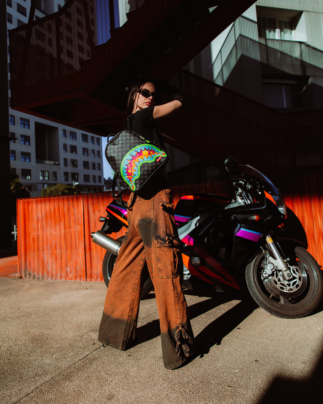 Dimensions: 10' x 5' x 11.5' • Two large main zippered compartments • Side pockets • Zippered Stash pocket • Adjustable straps for custom sizing • Gold zippers with metal hardware