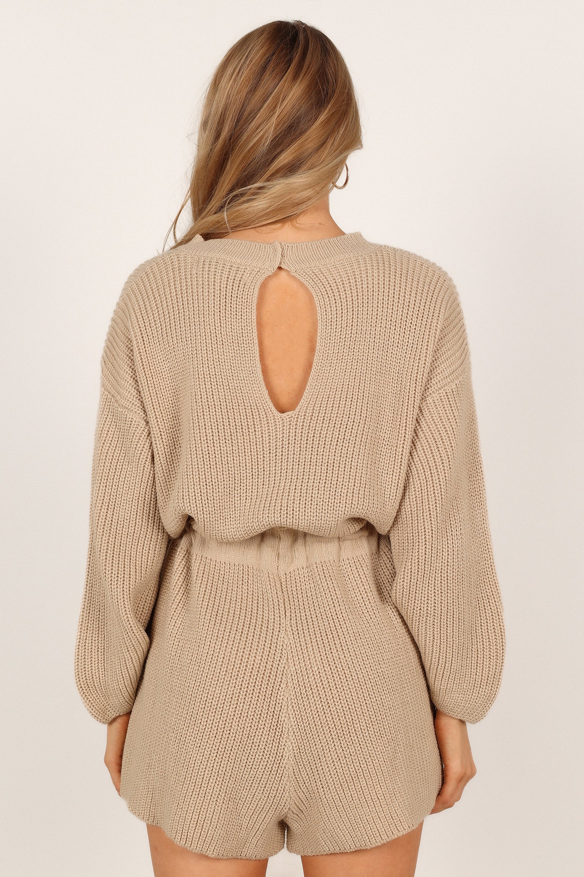 DETAILS Let your fashion statement be heard in this irresistible sweater romper! With a round neckline and long sleeves, this romper provides plenty of coverage while still looking chic. The tie close drawstring waist offers an adjustable fit so you can always feel comfortable.