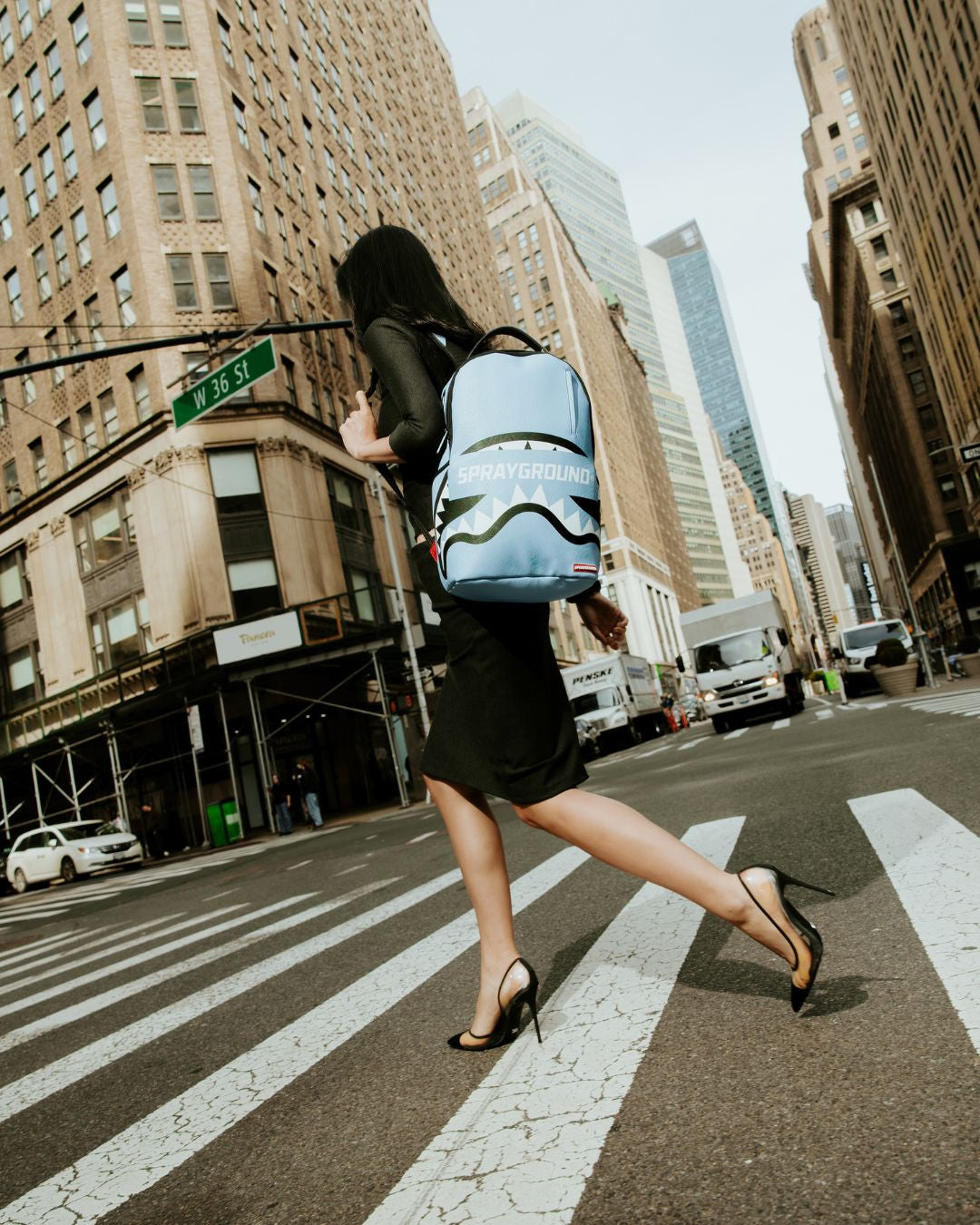 Dimensions: 18' x 6' x 11.5' • Front zipper pocket • Side pockets • Zippered Stash pocket • Separate velour sunglass compartment • Ergonomic mesh back padding • Adjustable Straps for custom sizing • Gold zippers with metal hardware • Metal 'Sprayground Authentic' badge • Slide through back sleeve connects to carry-on luggage to free your hands