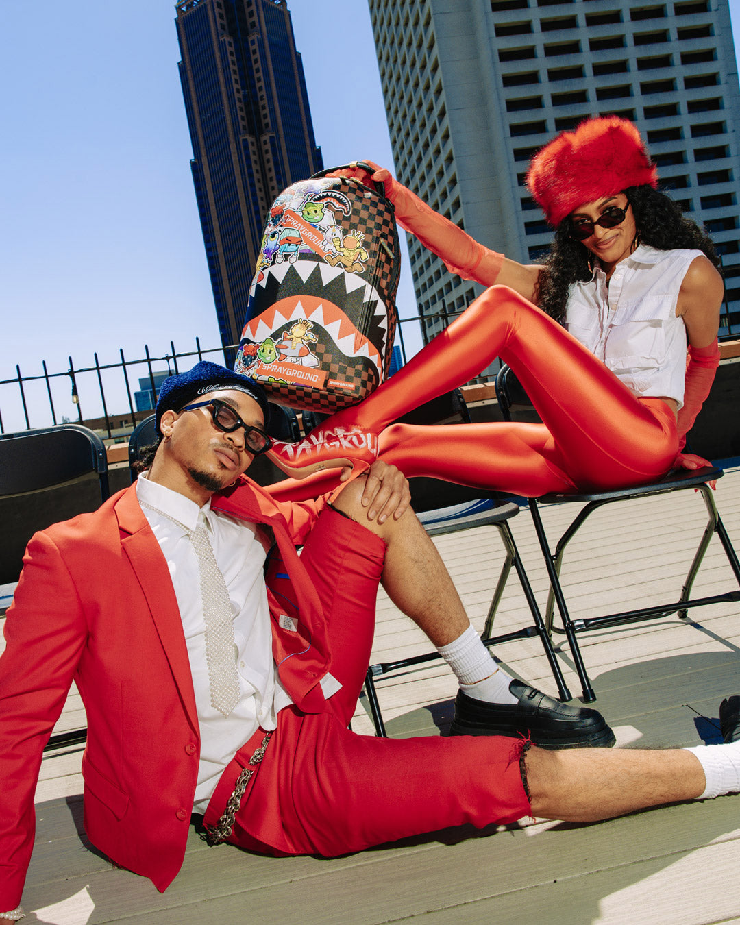 Dimensions: 18' x 6' x 11.5' • Front zipper pocket • Side pockets • Zippered Stash pocket • Separate velour sunglass compartment • Ergonomic mesh back padding • Adjustable Straps for custom sizing • Gold zippers with metal hardware • Metal 'Sprayground Authentic' badge • Slide through back sleeve connects to carry-on luggage to free your hands