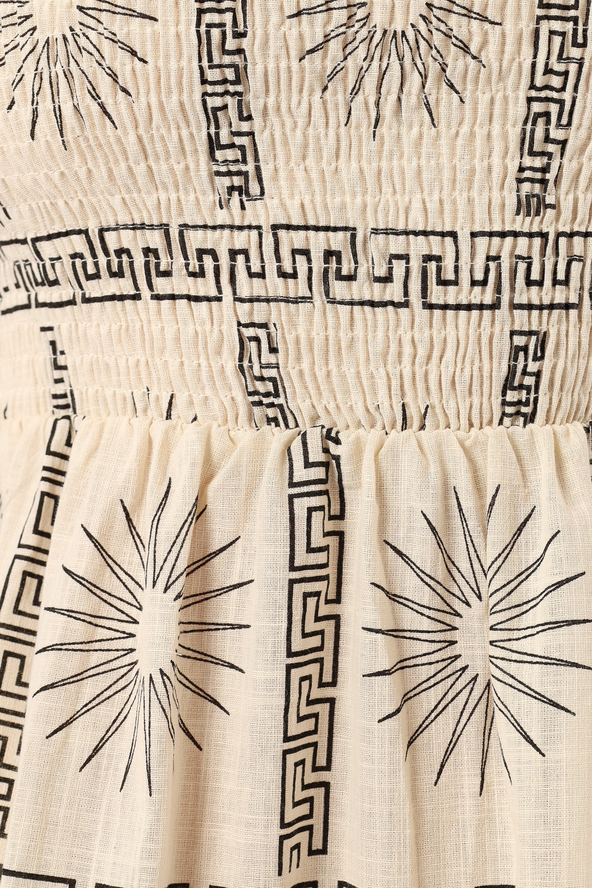 | DETAILS This season, let your style shine in our classic Soliel dress. With a square neckline adorned with short sleeves and elasticised cuffs, it's comfortable and stylish all at once. For an added touch of detail, the shirred elasticised bodice and drop tier skirt design make for an effortless silhouette.