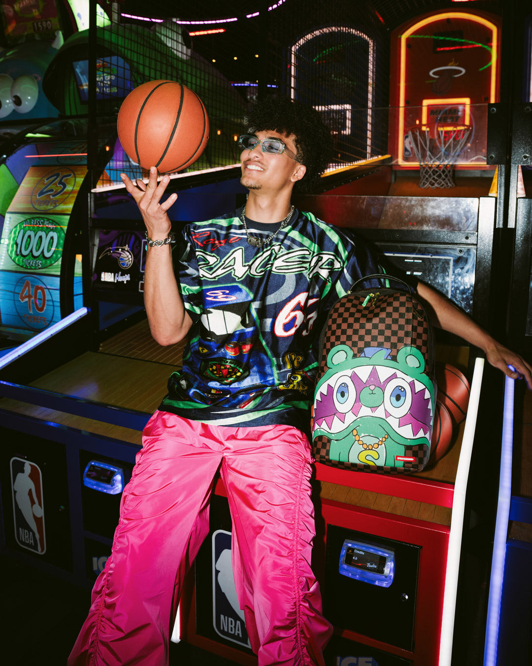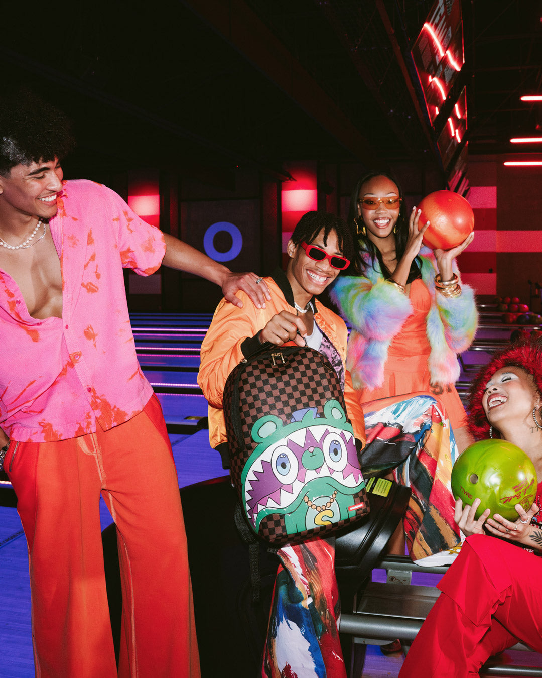 Dimensions: 18' x 6' x 11.5' • Front zipper pocket • Side pockets • Zippered Stash pocket • Separate velour sunglass compartment • Ergonomic mesh back padding • Adjustable Straps for custom sizing • Gold zippers with metal hardware • Metal 'Sprayground Authentic' badge • Slide through back sleeve connects to carry-on luggage to free your hands