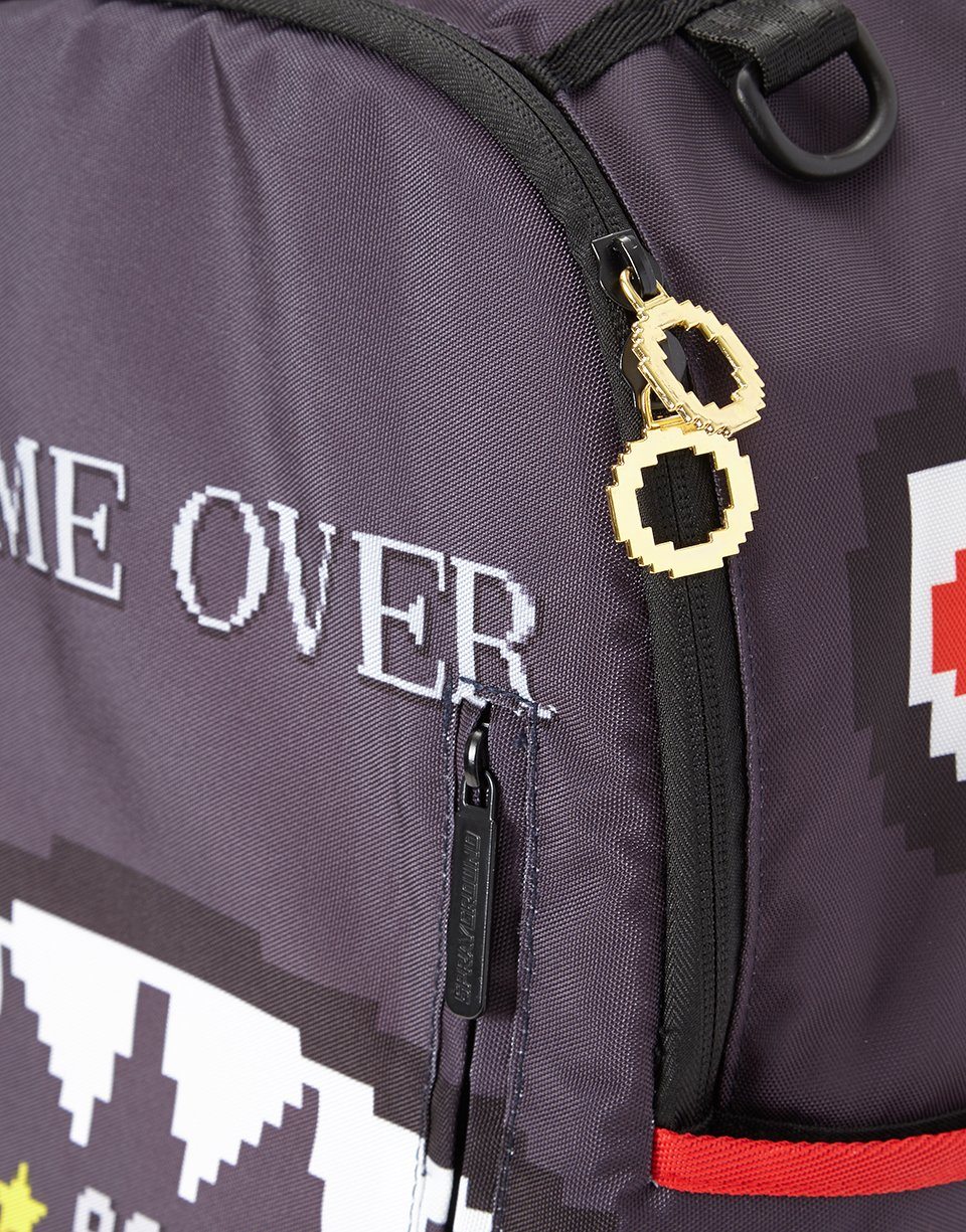 ExteriorDimensions: 18' x 6' x 11.5' ∙ Front zipper pocket ∙ Side pockets ∙ Zippered Stash pocket ∙ Ergonomic mesh back padding ∙ Adjustable Straps for custom sizing ∙ Nylon Zippers with Metal Hardware ∙ Metal 'Sprayground Authentic' badge ∙ Slide through back sleeve connects to Carry on luggage to free your hands