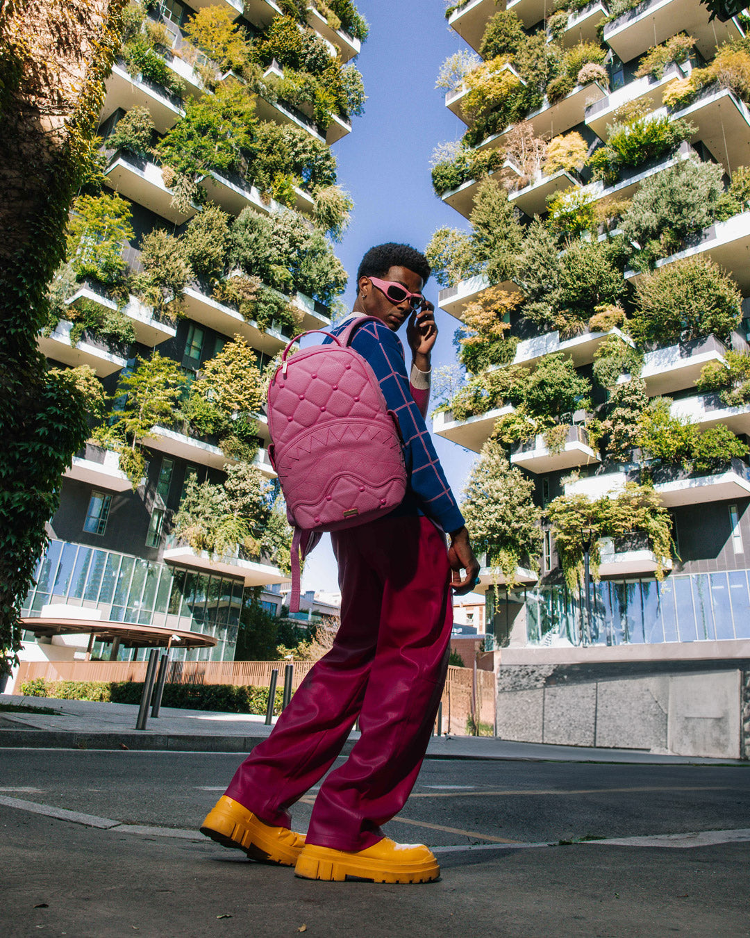 Dimensions: 18' x 6' x 11.5' • Front zipper pocket • Side pockets • Zippered Stash pocket • Separate velour sunglass compartment • Ergonomic mesh back padding • Adjustable Straps for custom sizing • Gold zippers with metal hardware • Metal 'Sprayground Authentic' badge • Slide through back sleeve connects to carry-on luggage to free your hands