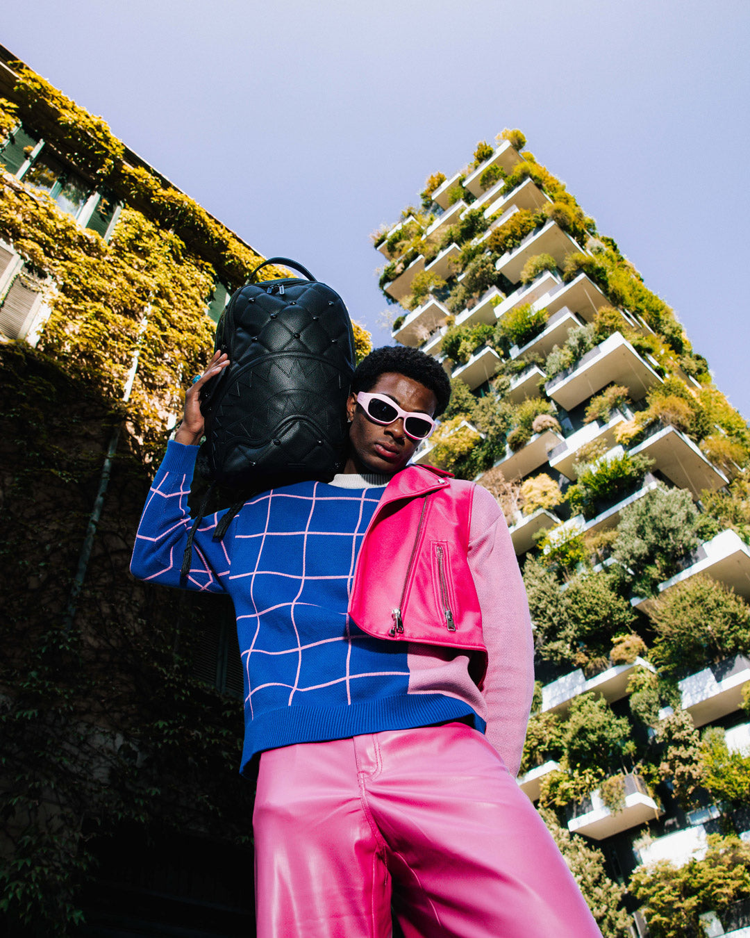 Dimensions: 18' x 6' x 11.5' • Front zipper pocket • Side pockets • Zippered Stash pocket • Separate velour sunglass compartment • Ergonomic mesh back padding • Adjustable Straps for custom sizing • Gold zippers with metal hardware • Metal 'Sprayground Authentic' badge • Slide through back sleeve connects to carry-on luggage to free your hands