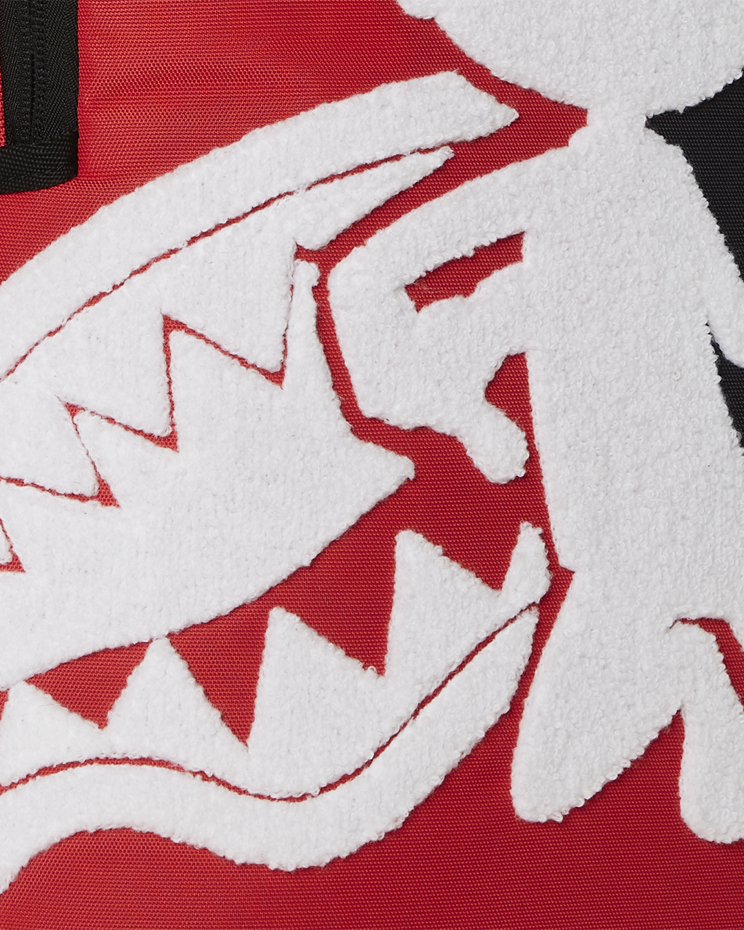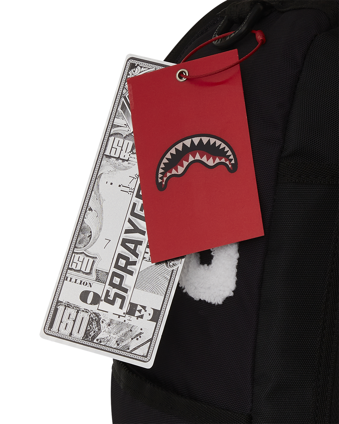 Dimensions: 18' x 6' x 11.5' • Front zipper pocket • Side pockets • Zippered Stash pocket • Separate velour sunglass compartment • Ergonomic mesh back padding • Adjustable Straps for custom sizing • Gold zippers with metal hardware • Metal 'Sprayground Authentic' badge • Slide through back sleeve connects to carry-on luggage to free your hands