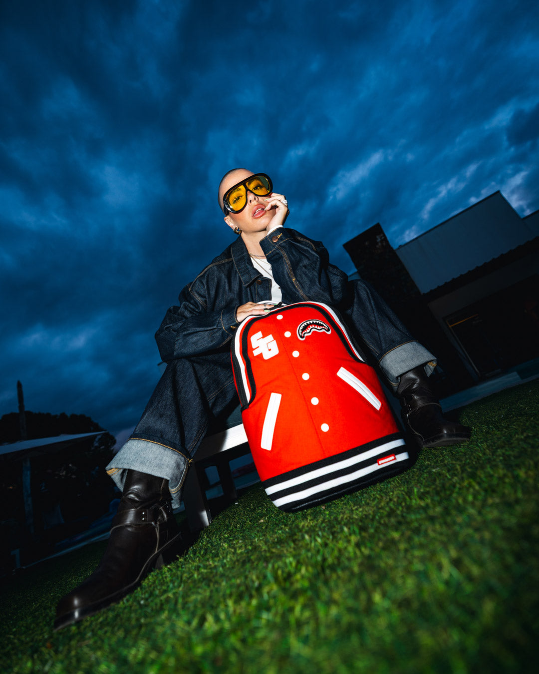 Dimensions: 18' x 6' x 11.5' • Front zipper pocket • Side pockets • Zippered Stash pocket • Separate velour sunglass compartment • Ergonomic mesh back padding • Adjustable Straps for custom sizing • Gold zippers with metal hardware • Metal 'Sprayground Authentic' badge • Slide through back sleeve connects to carry-on luggage to free your hands