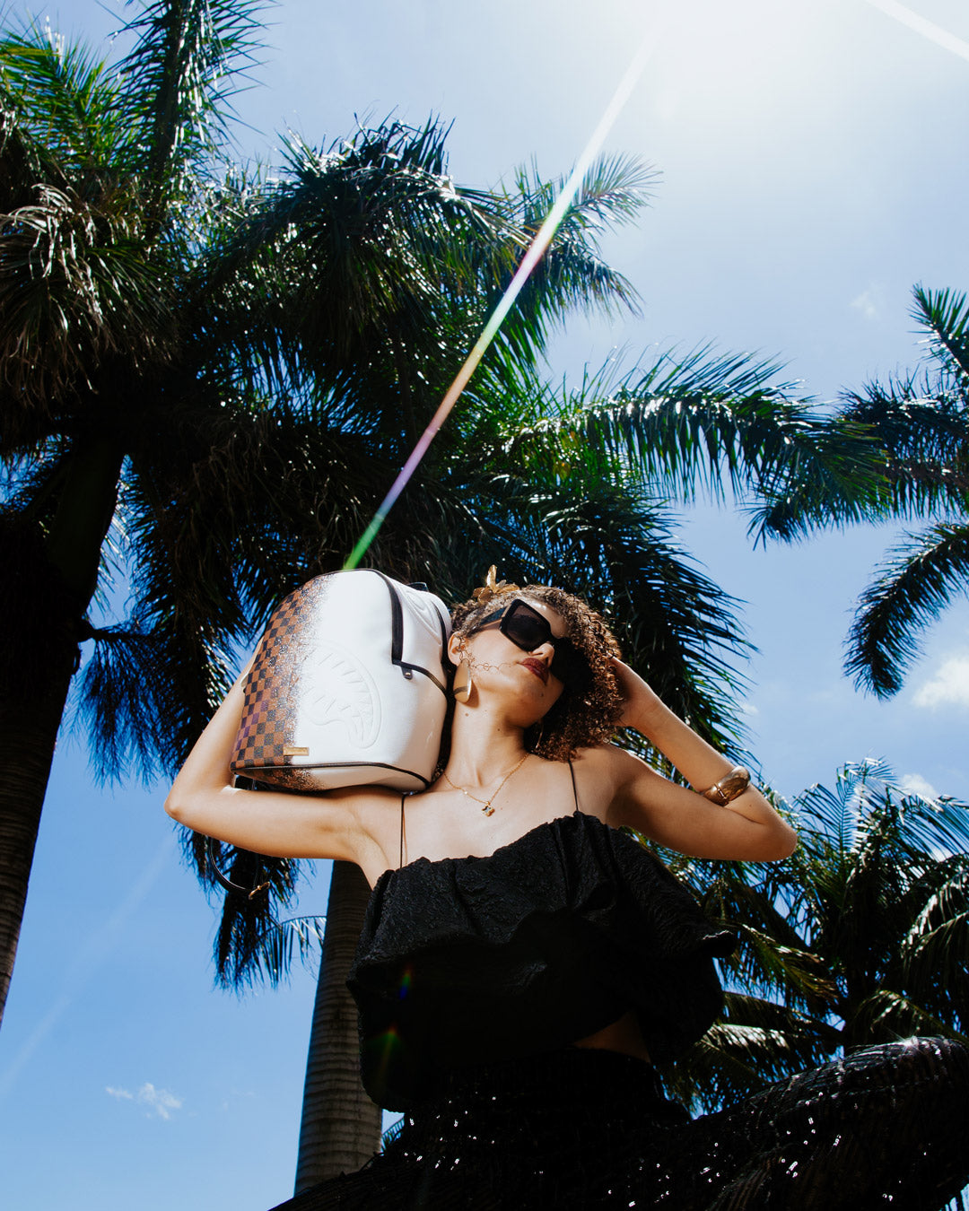 Dimensions: 10' x 5' x 11.5' • Two large main zippered compartments • Side pockets • Zippered Stash pocket • Adjustable straps for custom sizing • Gold zippers with metal hardware