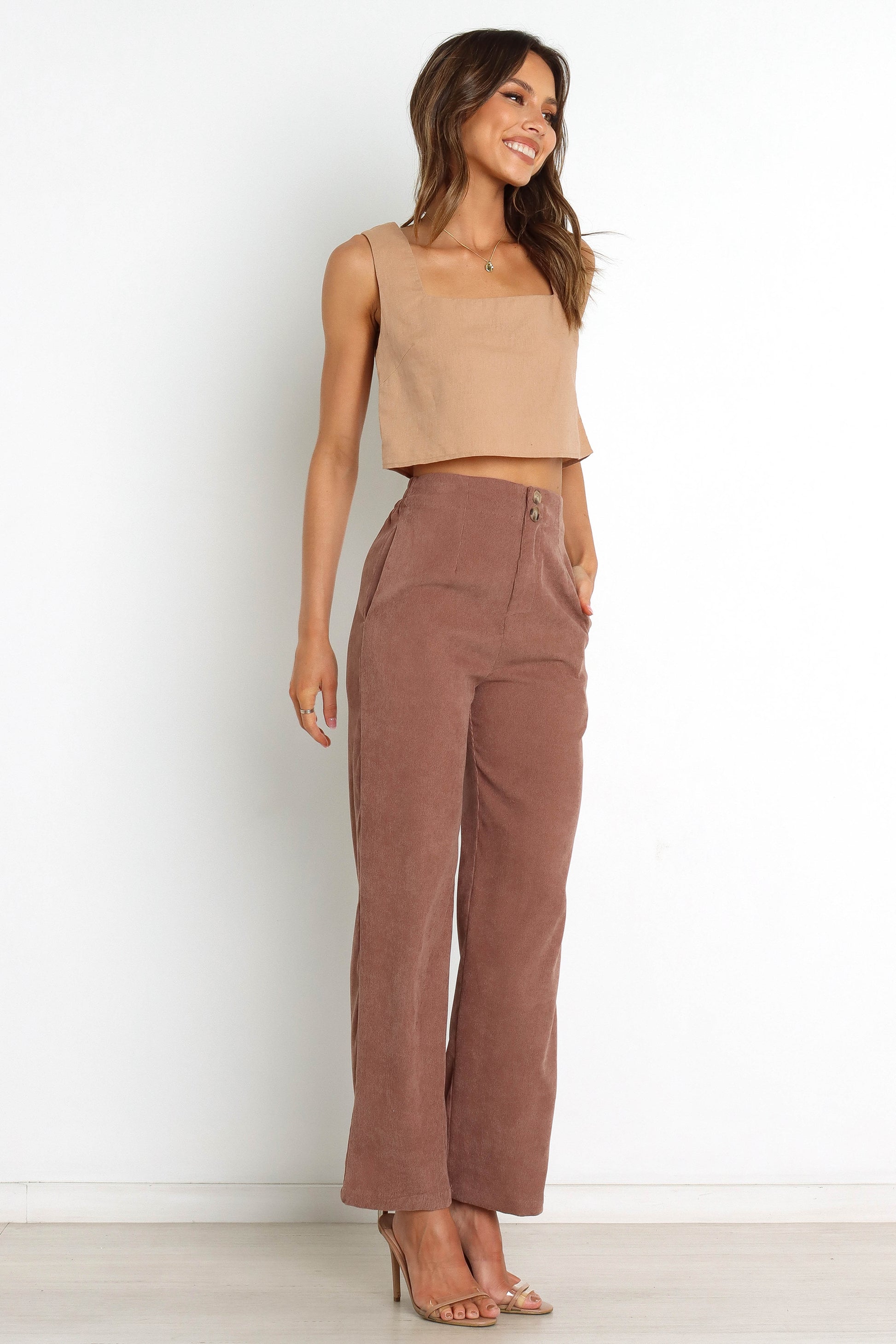 DETAILS Introducing the Springfield Pants in a versatile brown - a true style game-changer! These high-waisted goodies are cut from trendy corduroy that screams cozy-chic. A zipper fly with a button closure promises a secure fit while the elasticised back waistband provides all the comfort you need.