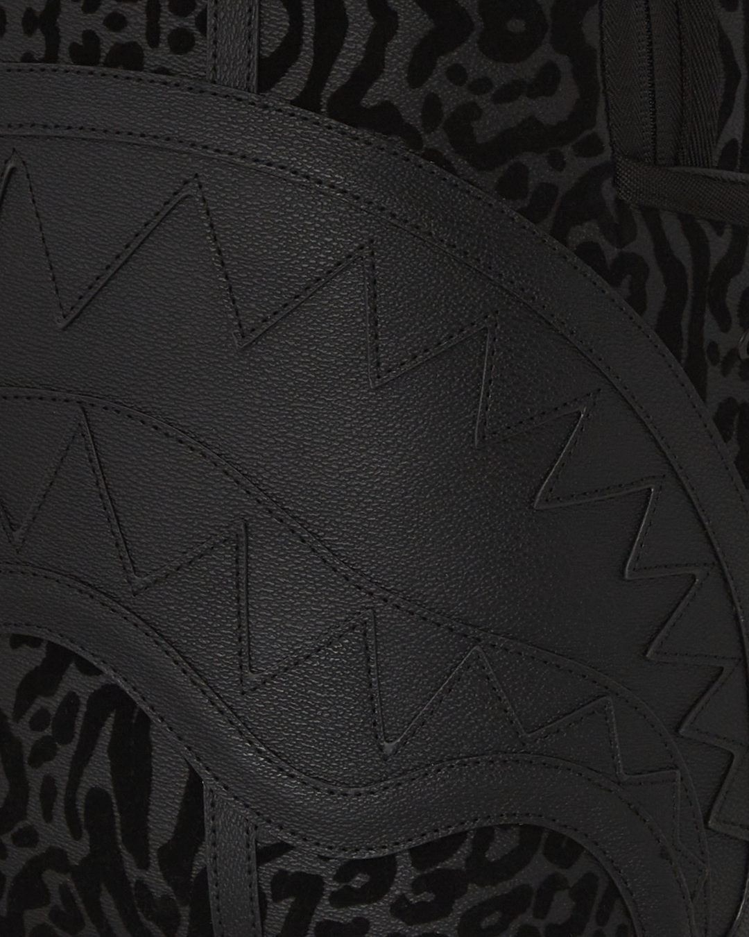 Dimensions: 18' x 6' x 11.5' • Front zipper pocket • Side pockets • Zippered Stash pocket • Separate velour sunglass compartment • Ergonomic mesh back padding • Adjustable Straps for custom sizing • Gold zippers with metal hardware • Metal 'Sprayground Authentic' badge • Slide through back sleeve connects to carry-on luggage to free your hands