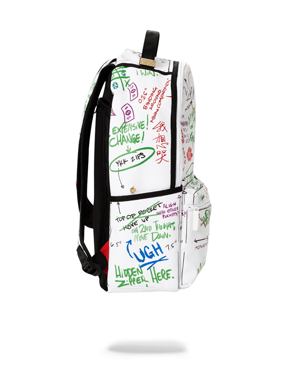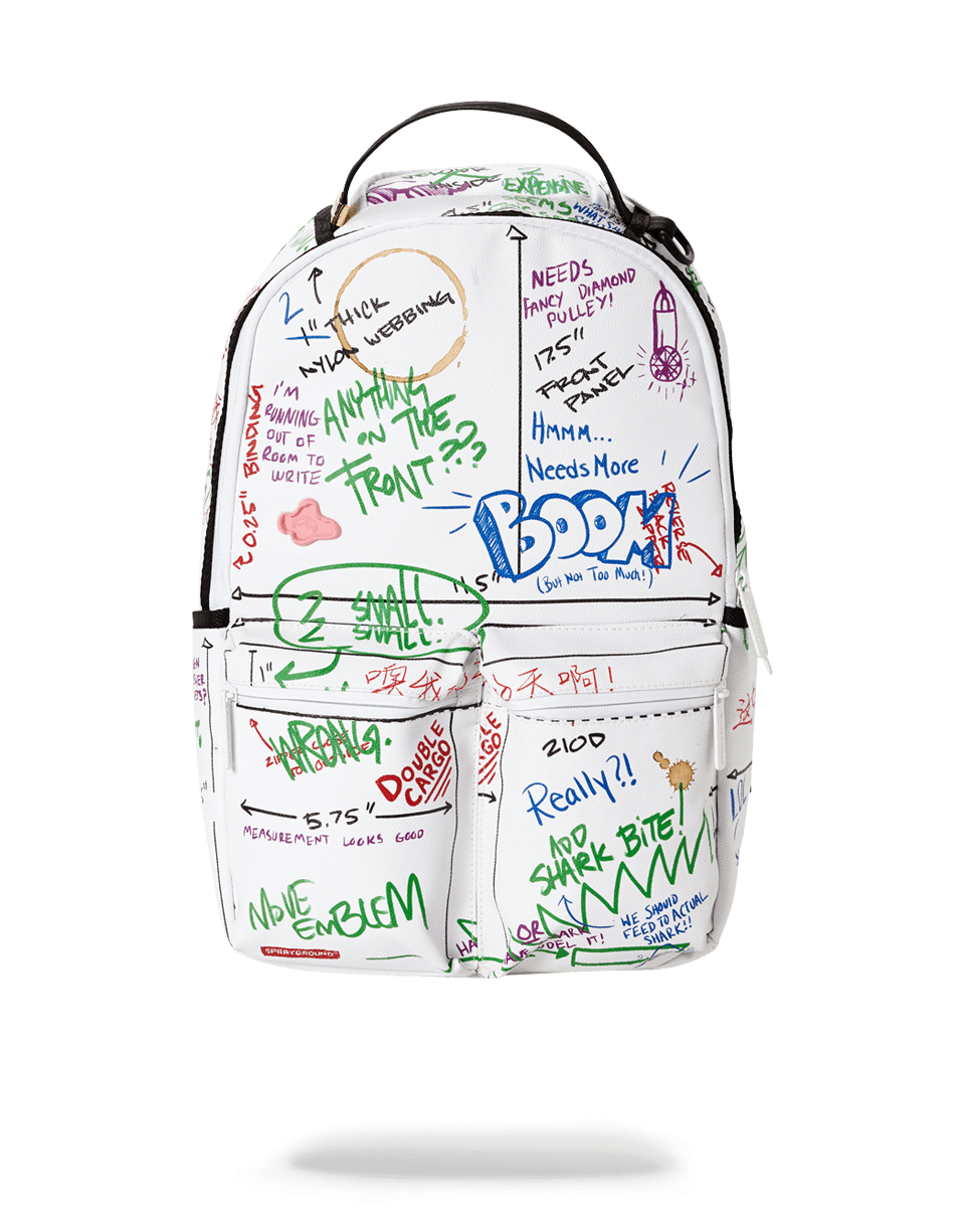 ExteriorDimensions: 18' x 6' x 11.5' ∙ 2 Front zippered pockets ∙ Side pockets ∙ Zippered Stash pocket ∙ Ergonomic mesh back padding ∙ Adjustable Straps for custom sizing ∙ Nylon Zippers with Metal Hardware ∙ Metal 'Sprayground Authentic' badge ∙ Slide through back sleeve connects to Carry on luggage to free your hands