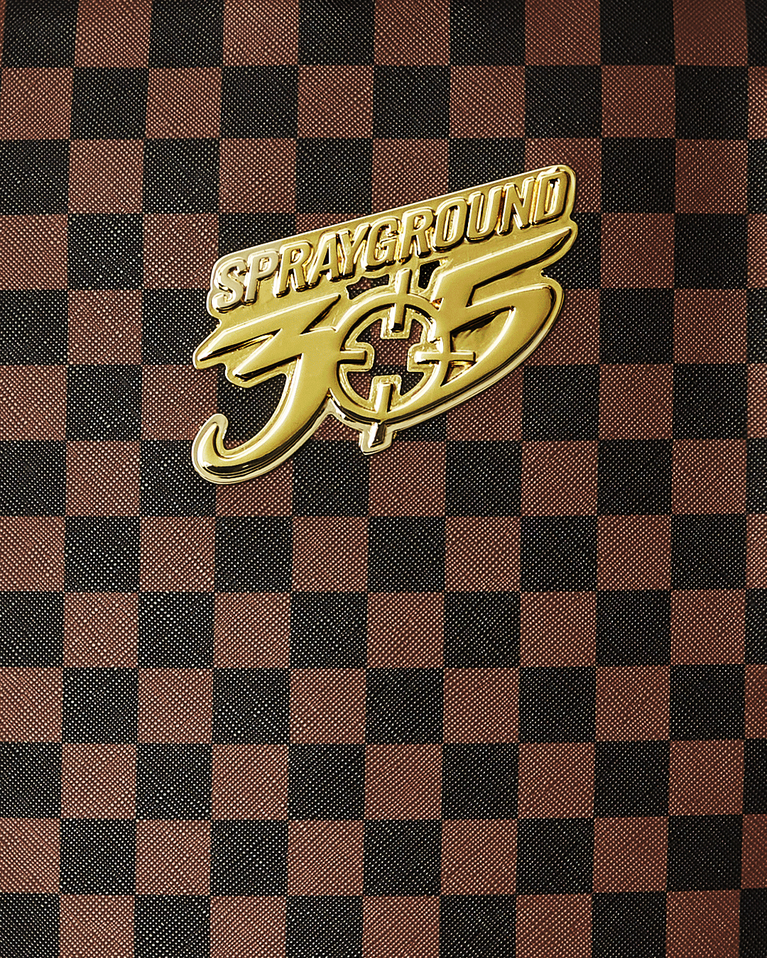 Dimensions: 18' x 6' x 11.5' • Front zipper pocket • Side pockets • Zippered Stash pocket • Separate velour sunglass compartment • Ergonomic mesh back padding • Adjustable Straps for custom sizing • Gold zippers with metal hardware • Metal 'Sprayground Authentic' badge • Slide through back sleeve connects to carry-on luggage to free your hands