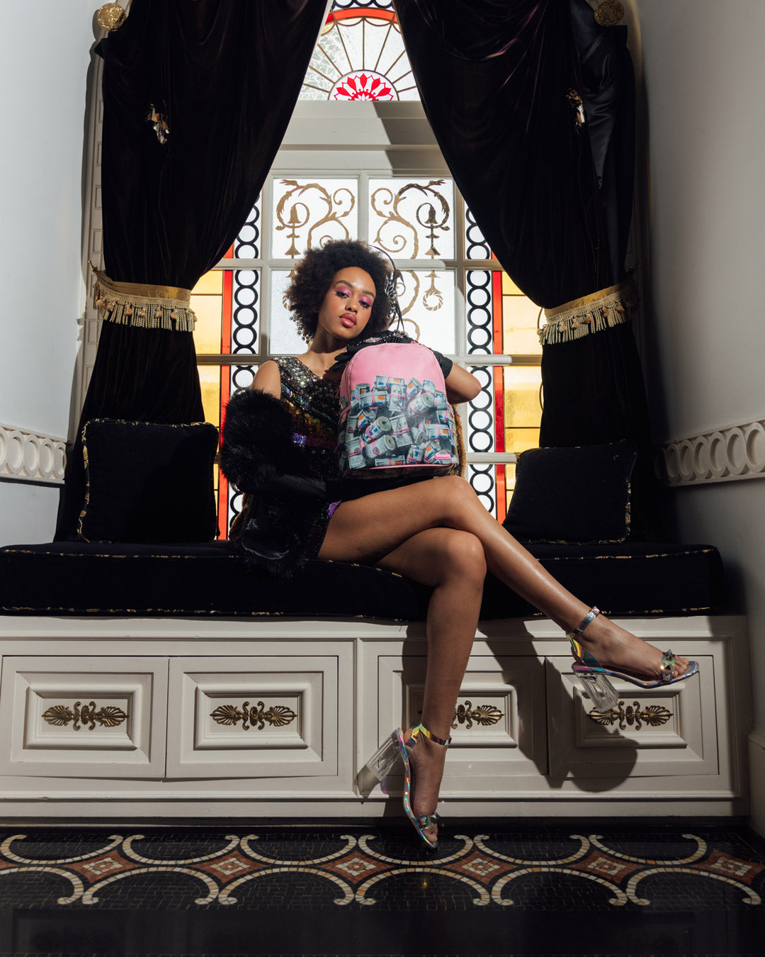 Dimensions: 10' x 5' x 11.5' • Two large main zippered compartments • Side pockets • Zippered Stash pocket • Adjustable straps for custom sizing • Gold zippers with metal hardware