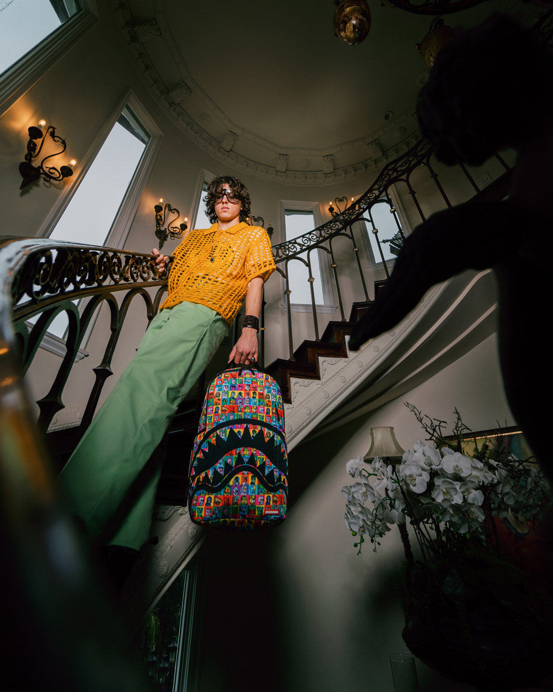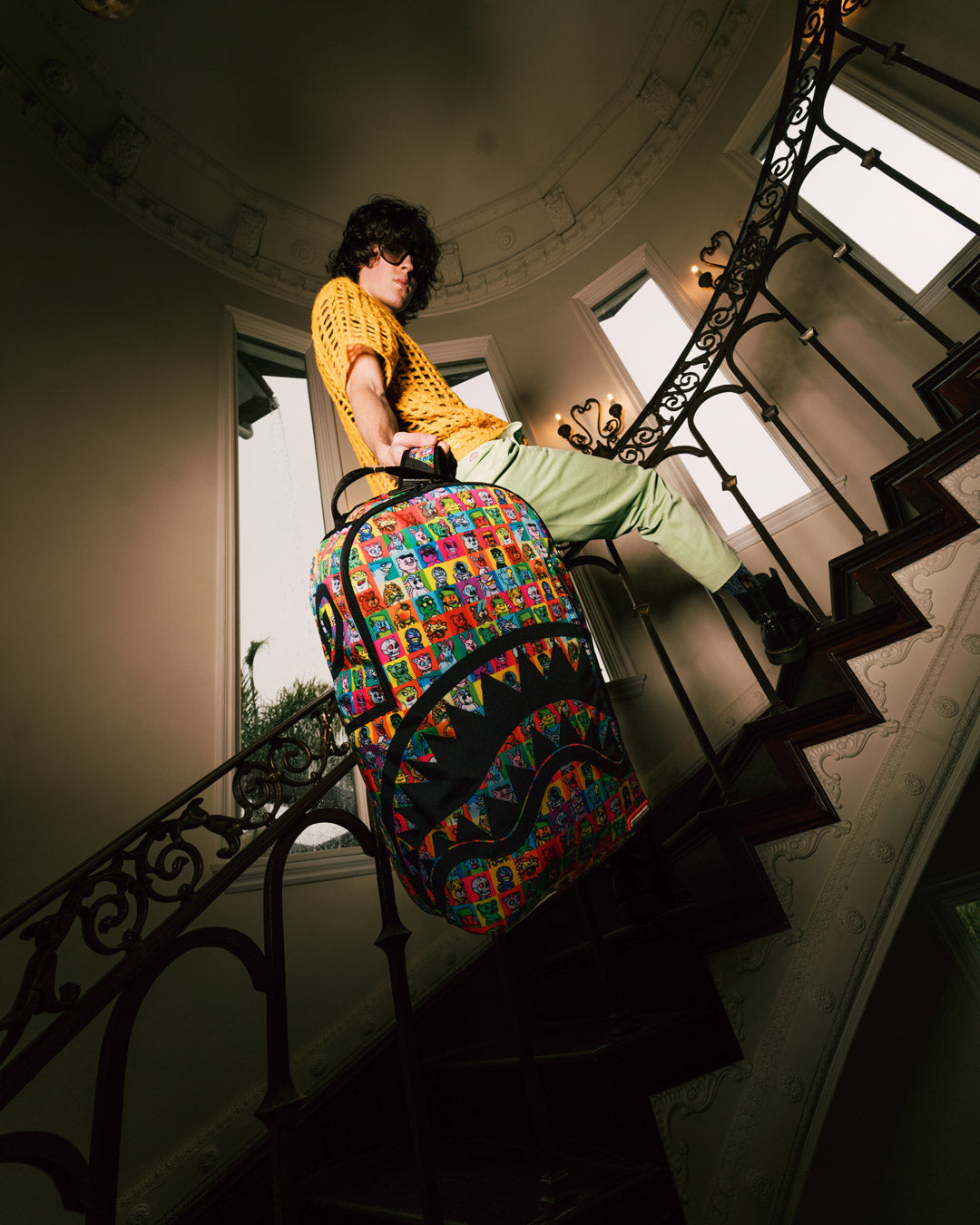 Dimensions: 18' x 6' x 11.5' • Front zipper pocket • Side pockets • Zippered Stash pocket • Separate velour sunglass compartment • Ergonomic mesh back padding • Adjustable Straps for custom sizing • Gold zippers with metal hardware • Metal 'Sprayground Authentic' badge • Slide through back sleeve connects to carry-on luggage to free your hands