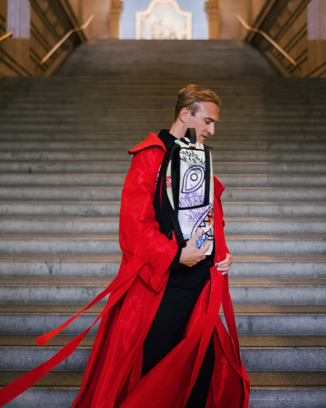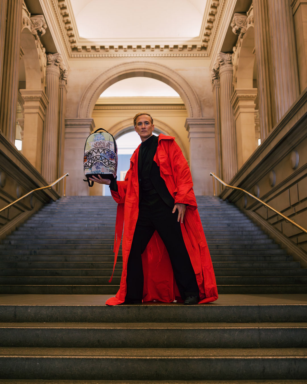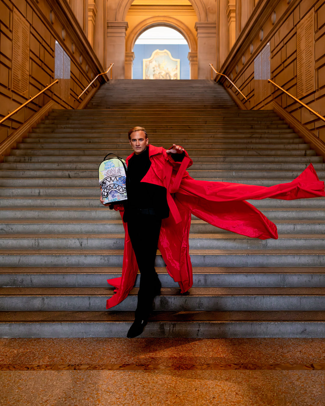 A map of The Met gets a contemporary makeover courtesy of Sprayground. This backpack displays the Museum’s blueprint customized with graffiti-like “sprays” of bold color and Sprayground’s signature shark mouth.