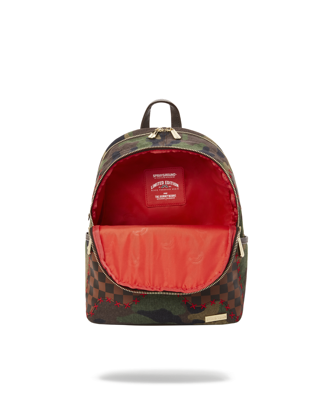 Dimensions: 10' x 5' x 11.5' • Two large main zippered compartments • Side pockets • Zippered Stash pocket • Adjustable straps for custom sizing • Gold zippers with metal hardware