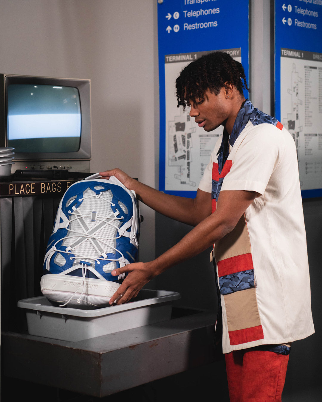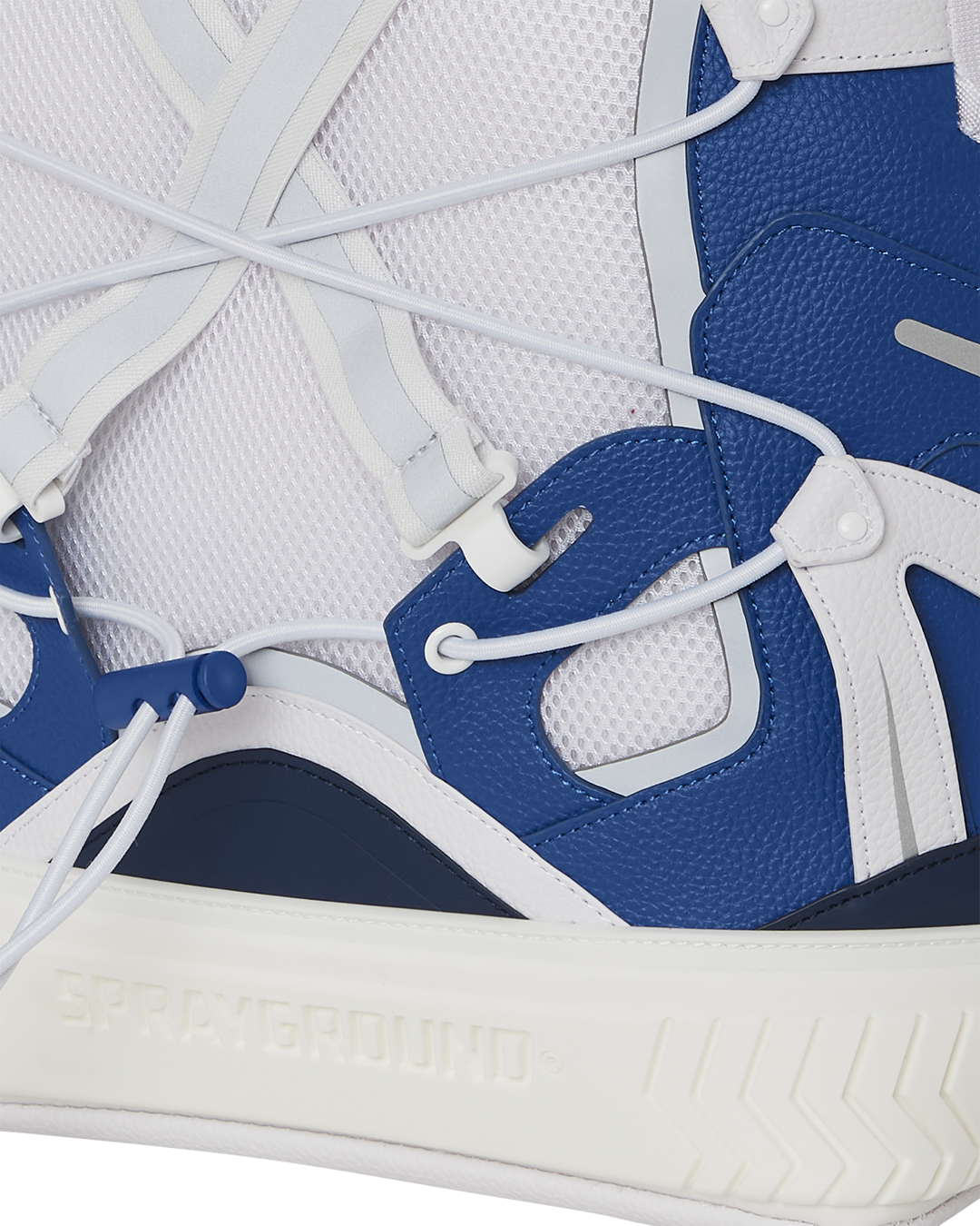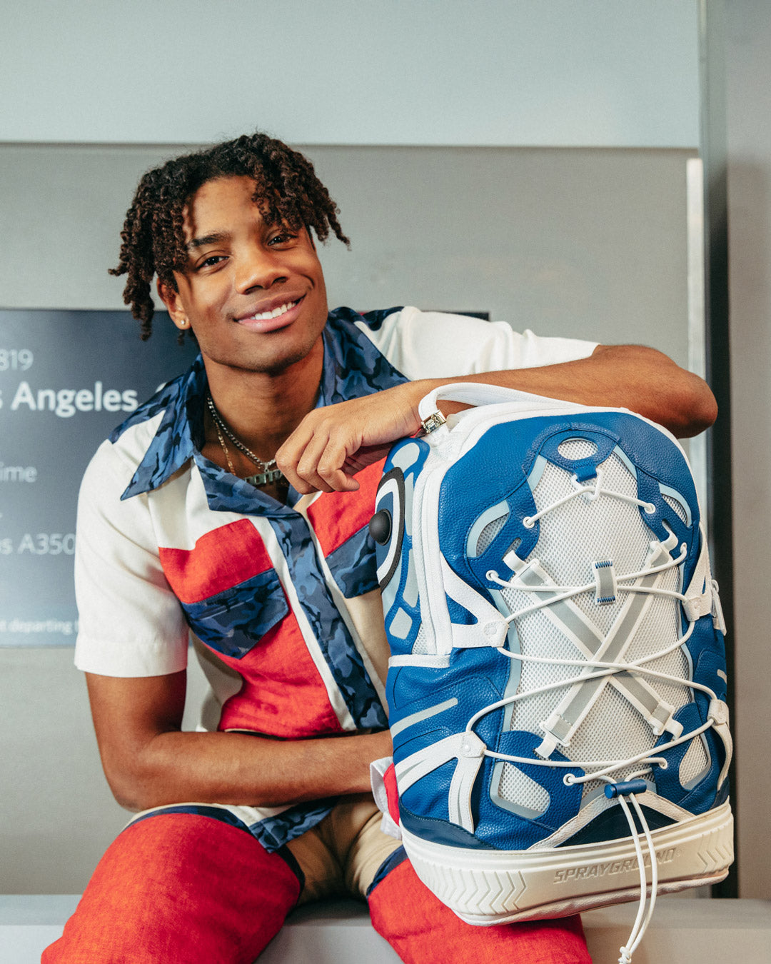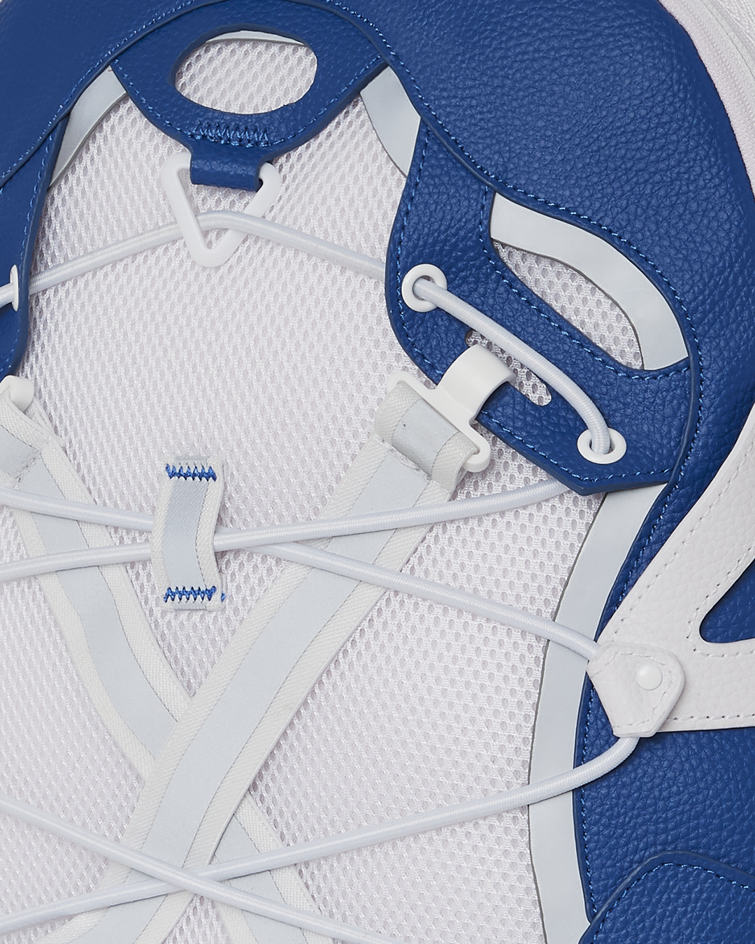 Dimensions: 18' x 6' x 11.5' • Front zipper pocket • Side pockets • Zippered Stash pocket • Separate velour sunglass compartment • Ergonomic mesh back padding • Adjustable Straps for custom sizing • Gold zippers with metal hardware • Metal 'Sprayground Authentic' badge • Slide through back sleeve connects to carry-on luggage to free your hands
