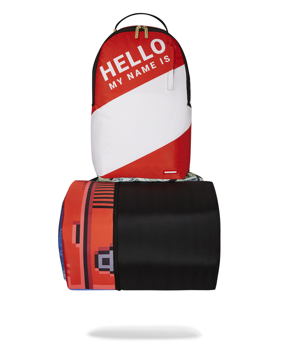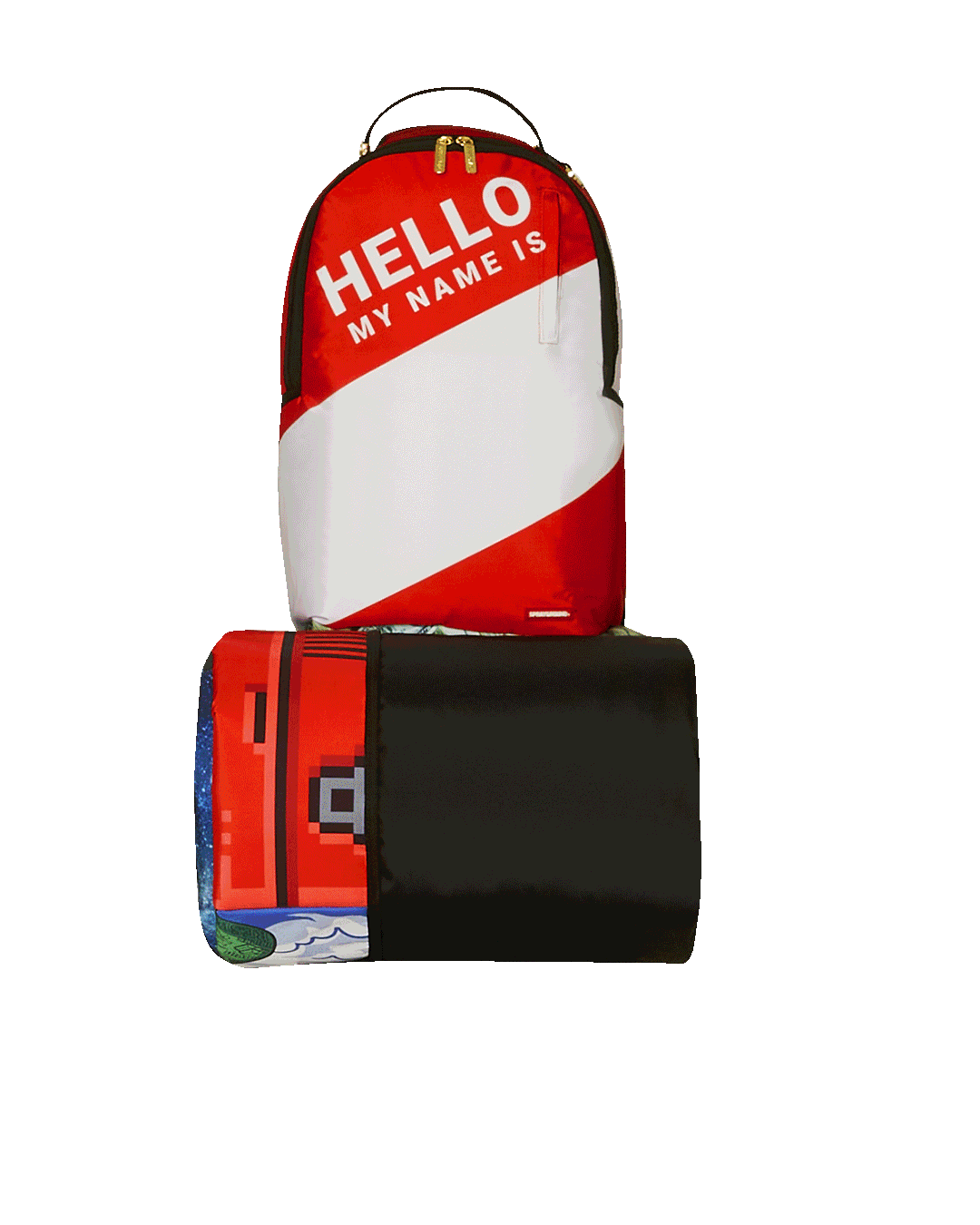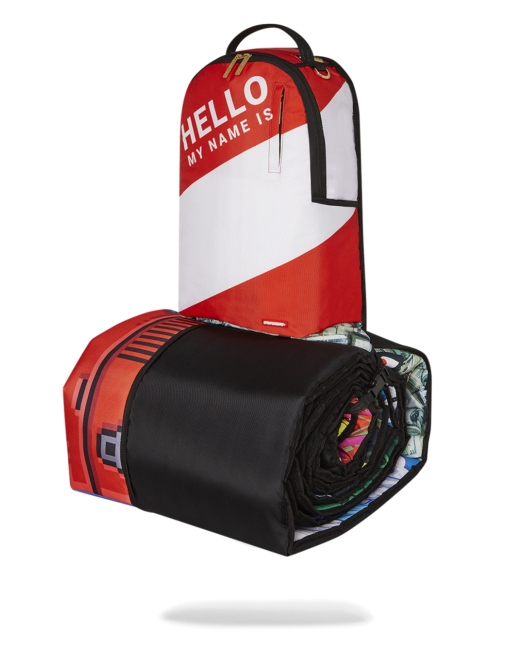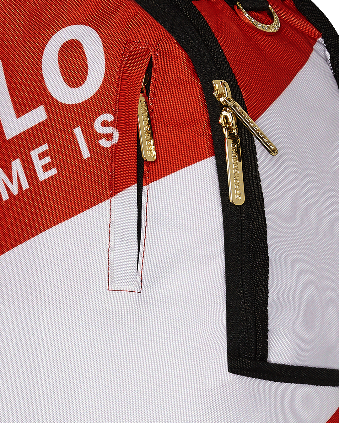 Dimensions: 18' x 6' x 11.5' • Front zipper pocket • Side pockets • Zippered Stash pocket • Separate velour sunglass compartment • Ergonomic mesh back padding • Adjustable Straps for custom sizing • Gold zippers with metal hardware • Metal 'Sprayground Authentic' badge • Slide through back sleeve connects to carry-on luggage to free your hands