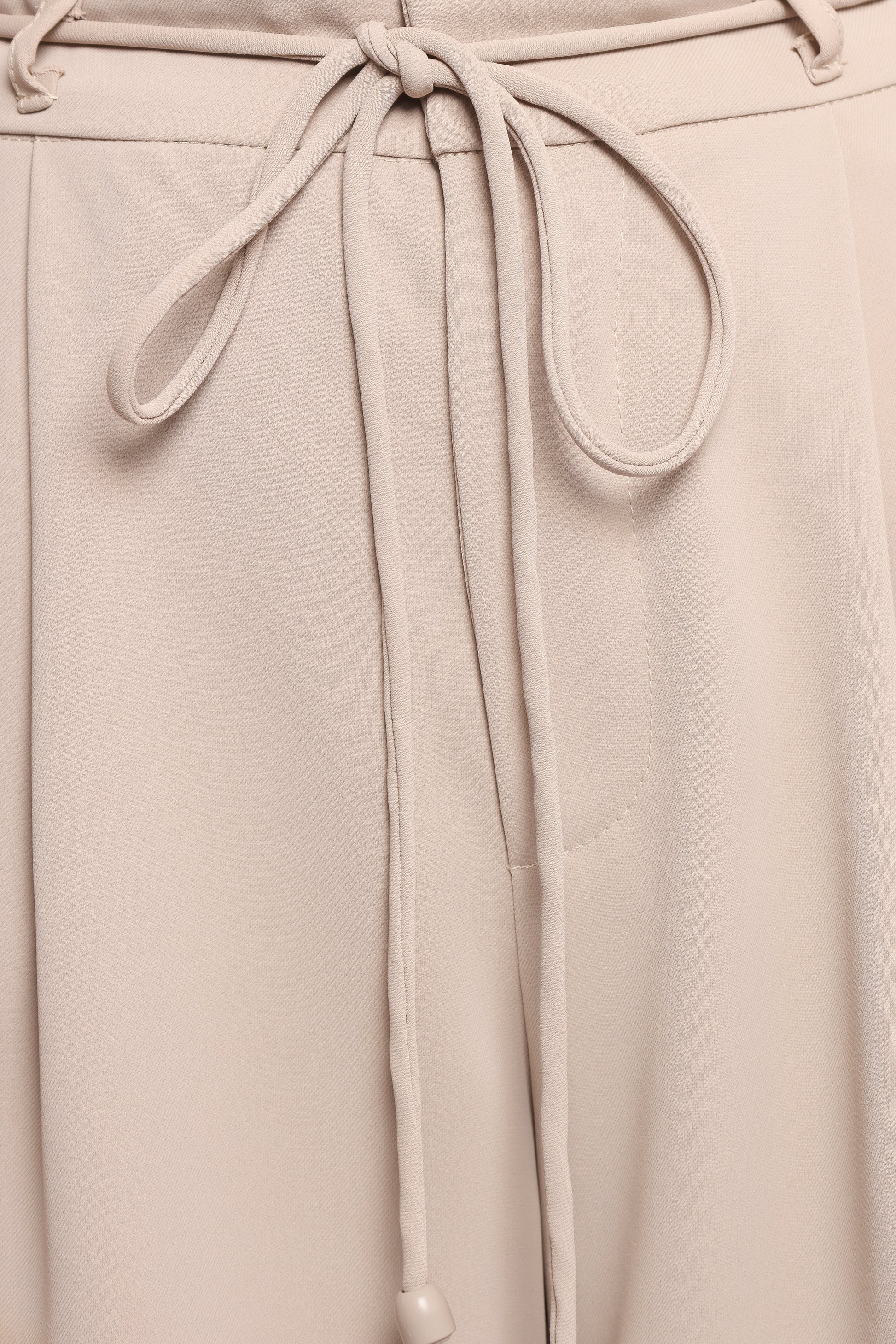 | DETAILS These high-waisted trousers offer a perfect blend of style and comfort, crafted to elevate your look without compromising ease. The gathered pleated waistband adds a touch of sophistication, creating a flattering silhouette that's accentuated by the detachable waist tie for versatile styling options.