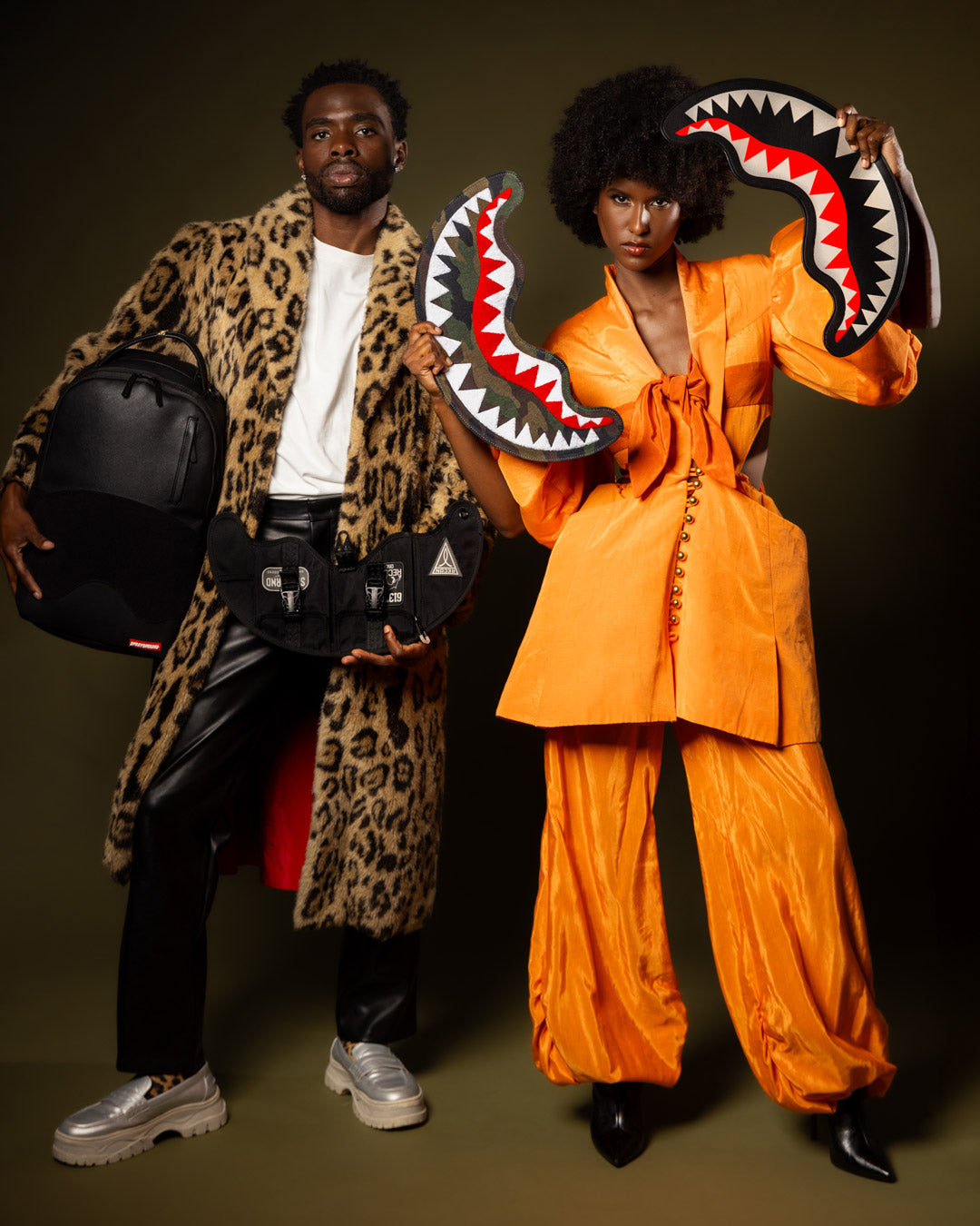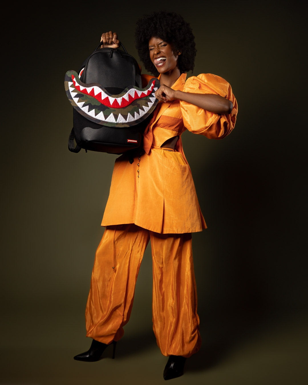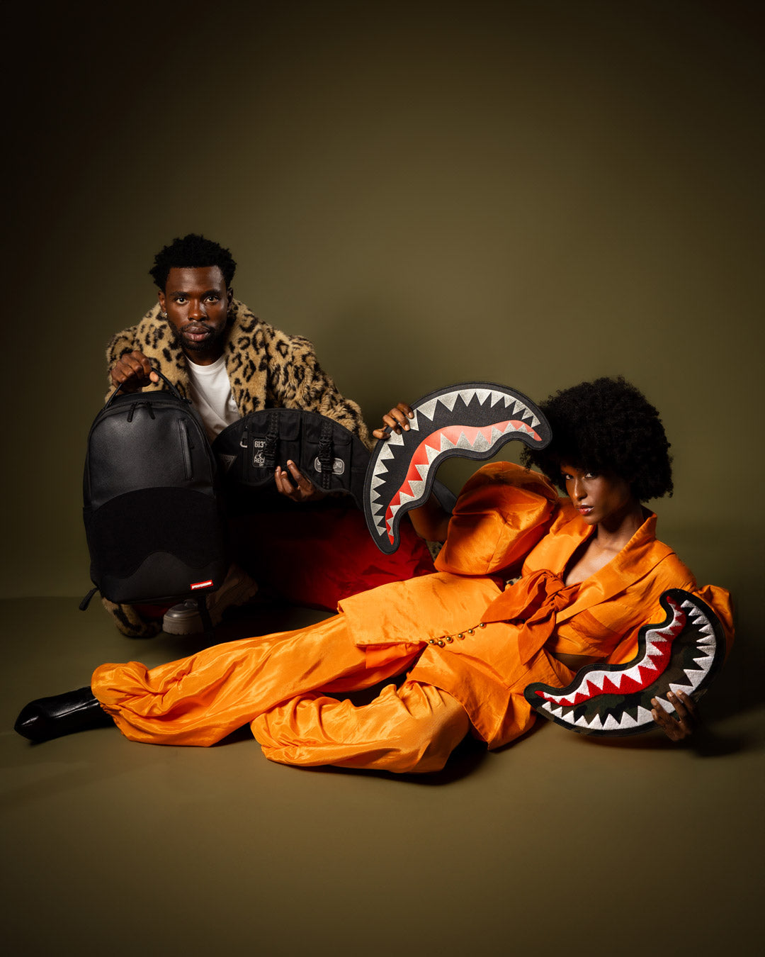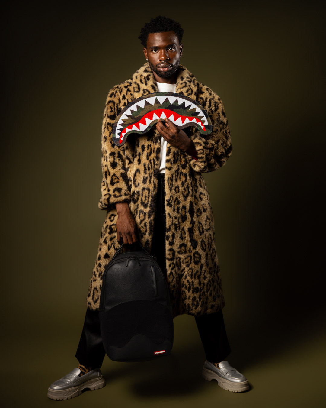 Dimensions: 18' x 6' x 11.5' • Front zipper pocket • Side pockets • Zippered Stash pocket • Separate velour sunglass compartment • Ergonomic mesh back padding • Adjustable Straps for custom sizing • Gold zippers with metal hardware • Metal 'Sprayground Authentic' badge • Slide through back sleeve connects to carry-on luggage to free your hands