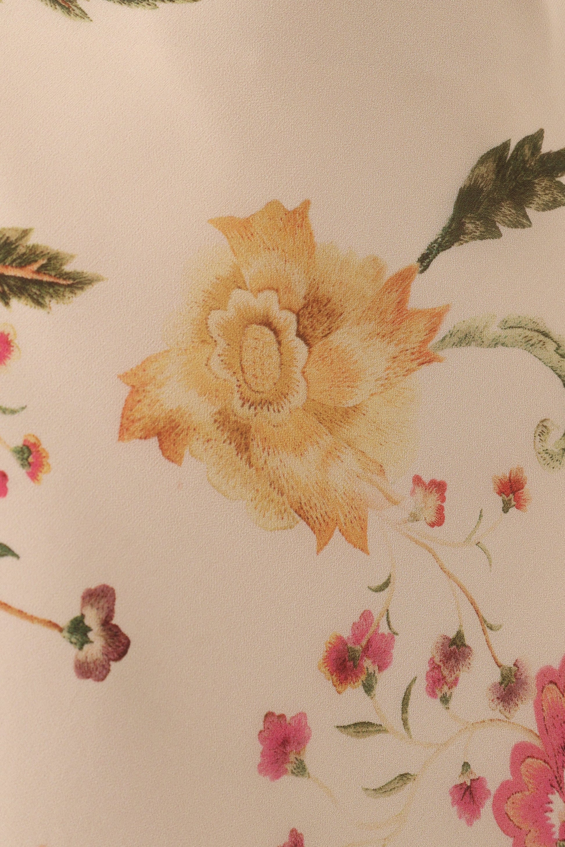 | DETAILS This enchanting maxi-length garment forms a celebration of femininity with its dainty V-neckline and short, flowing sleeves. The dress's back is an expression of grace with crossover adjustable straps offering a personalised fit, ensuring you feel as comfortable as you do charming.